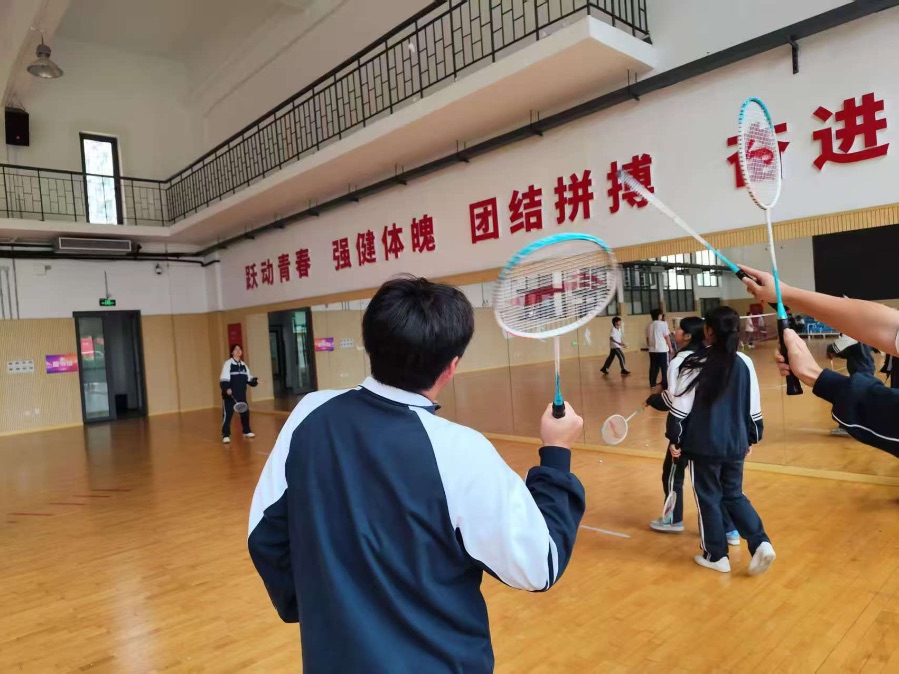 每周五下午,学校羽毛球馆总能看到这样充满活力的场景:数十名学生手持球拍进行热身运动,颠球、挥拍、步伐练习,随后展开精彩的双打对抗赛。