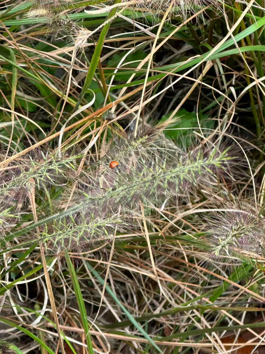 上上周秋游的风,现在想起来还裹着草叶的潮气。当时蹲在草坪边系鞋带,忽然瞥见狗尾草毛茸茸的穗子上,趴着只红壳带星的小玩意儿——是七星瓢虫,正慢悠悠地顺着草茎爬,黑亮的小触角还时不时抖两下。