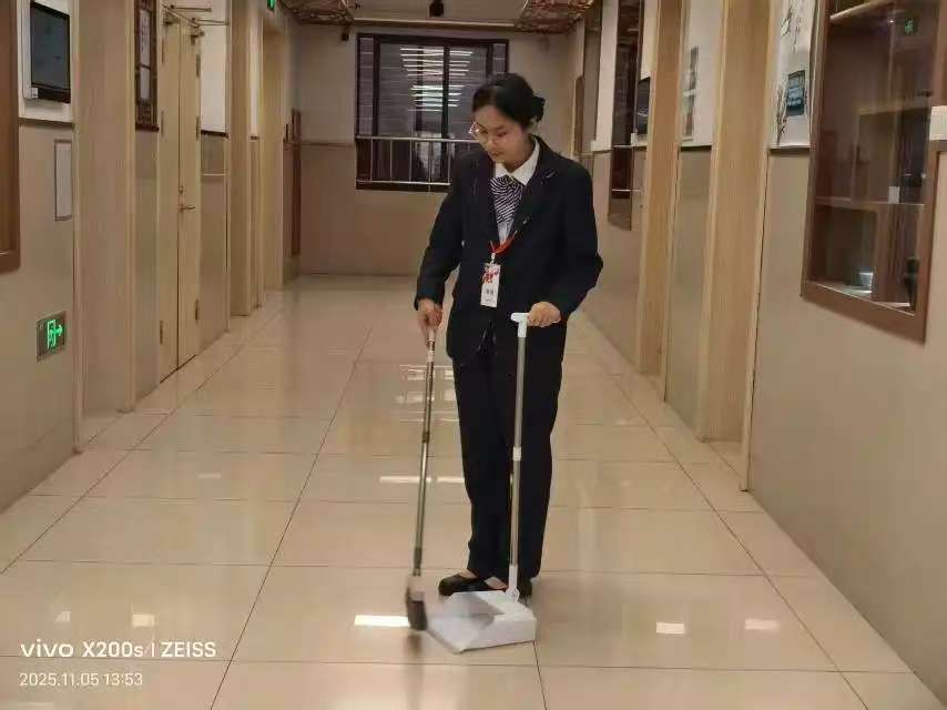在本次值星劳动中,我对各类劳动工具的认知与使用有了深刻体会。 扫帚和拖把是清洁地面的“好帮手”,扫帚能快速聚拢灰尘、杂物,使用时要掌握好力度和角度,顺着一个方向清扫更高效;拖把则用于去除地面污渍,拖地前需将拖把拧干,避免水渍残留,来回拖动时要注意覆盖全面。 抹布是擦拭墙面、楼梯的关键工具,使用前需清洗干净,擦拭时要从上到下、从左到右,这样能保证清洁无遗漏,同时也能避免重复污染。 这些劳动工具虽小,却在值星工作中发挥着重要作用。通过熟练使用它们,我不仅完成了卫生清洁任务,更明白了每一件工具都有其独特价值,合理运用工具能让劳动事半功倍,也让我对劳动的意义有了更深的理解。