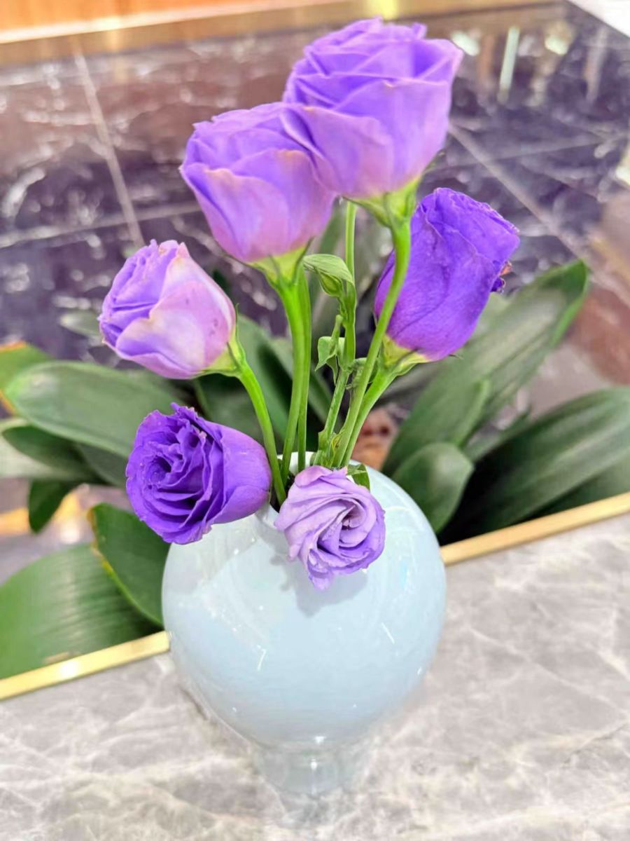 这束紫桔梗像把安静的浪漫揣在了瓶里,浅青与深紫撞出柔缓的韵,花苞的软、花茎的挺、叶片的润,凑成了案头那抹不用言说的温柔,抬眼就能碰着的轻甜。