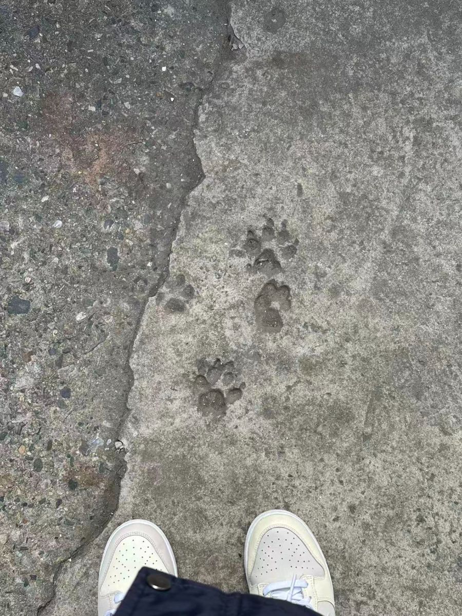 等公交的间隙里,风把路边的落叶吹得在脚边打旋,我低头数着地砖上的裂纹,忽然就撞见了这几串浅浅的脚印。像是哪个毛茸茸的小家伙刚从这里蹦跳着跑过,爪尖的痕迹还带着点湿润的泥土,在干燥的水泥上洇出小小的凹痕。我蹲下来比了比,脚印比我的指甲盖大不了多少,大概是只路过觅食的小流浪猫,或者是隔壁院子里总爱偷溜出来的那只柯基——它总爱把尾巴翘得高高的,跑起来四只小短腿像装了弹簧。公交站台的电子屏还在闪烁着下一班车的时间,我却忽然想起小时候在雪地里追着小狗脚印跑的下午,也是这样带着点傻气的期待,等着某个软乎乎的身影从拐角探出头来。