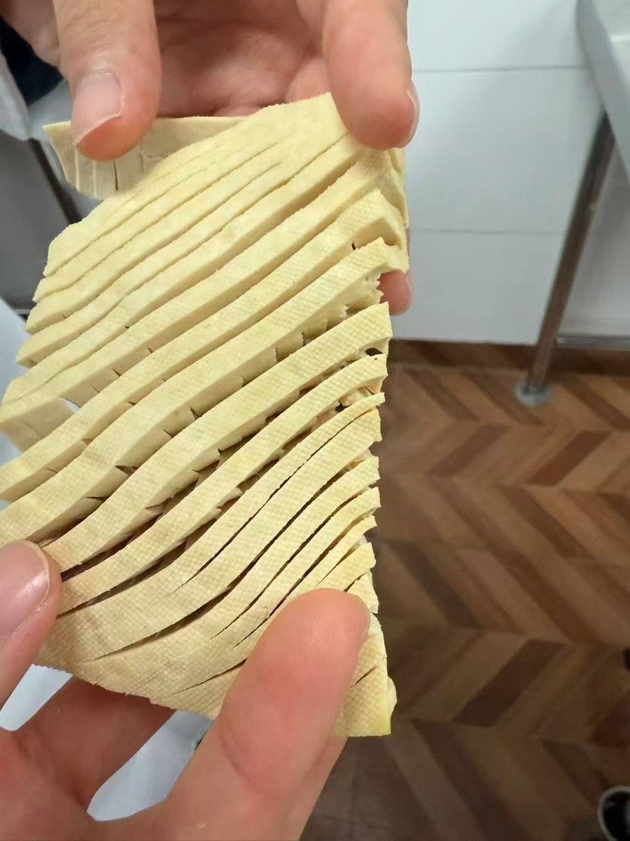 这是被切成“拉花”造型的豆腐,也叫兰花干、豆腐串,是麻辣烫、串串香里的经典食材。