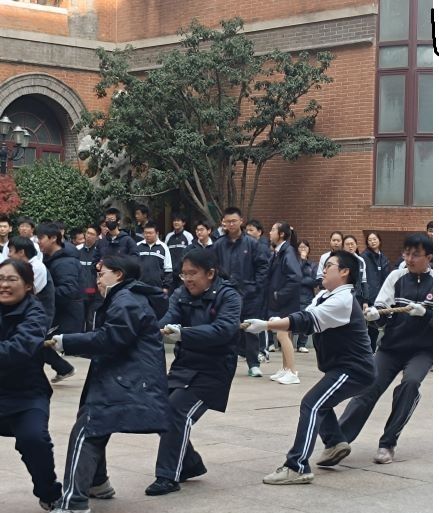 操场边的梧桐叶沙沙响,麻绳被晒得暖烘烘的,我们攥着粗粝的绳结,手心瞬间沁出细汗。“预备 ——” 裁判的哨声还没落地,两边的同学已经弓起身子,像扎了根的大树,脚紧紧抠着跑道。哨声一响,呐喊声立刻掀翻了天。我感觉胳膊上的肌肉突突跳,麻绳勒得手心发烫,却舍不得松半分。前面的小胖脸憋得通红,额头上的汗珠顺着脸颊往下滚,后背的衣服都被扯得紧紧的。旁边的女生扎着高马尾,辫子甩来甩去,嘴里喊着 “一二、一二”,声音都喊哑了。