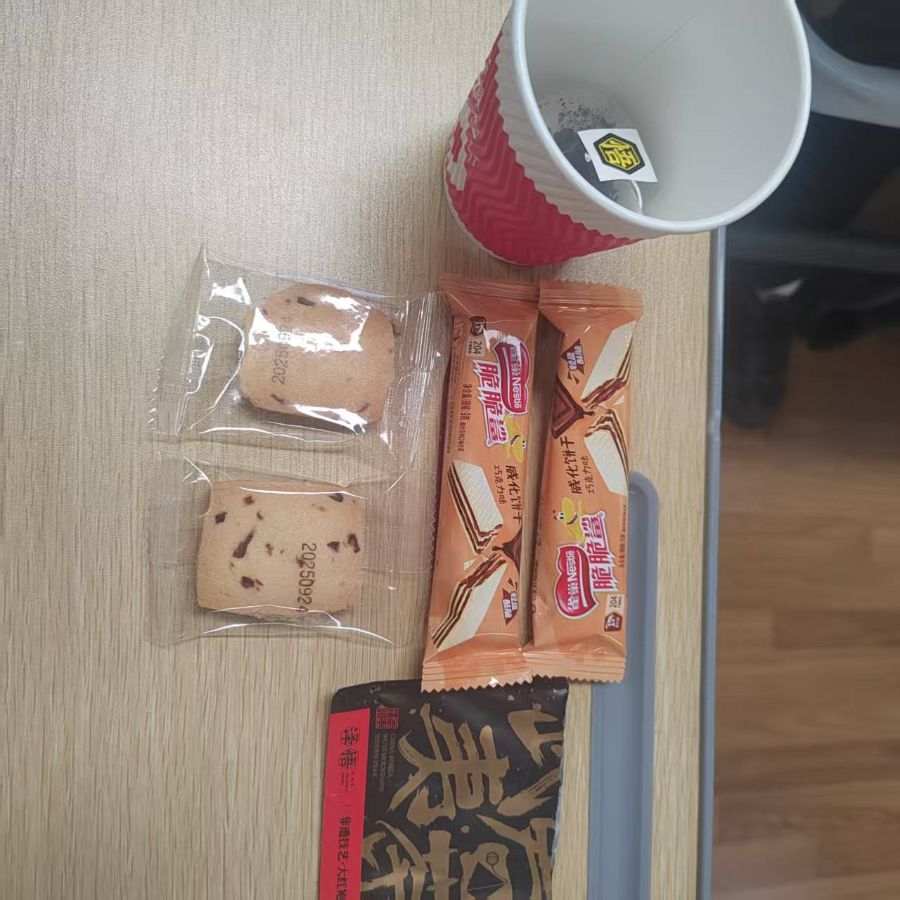 应该是同桌看我早上没吃早饭偷偷放的,心里一下子软乎乎的。我拆开一块曲奇咬了一口,酥松的口感混着巧克力的甜,再抿一口温热的茶,苦涩的茶味中和了甜腻,刚刚好。