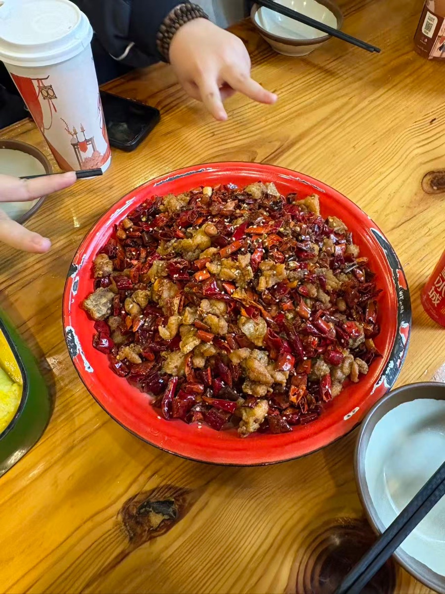汗水从额角渗出,嘴巴嘶嘶吸气,手却不停地往嘴里送。在辣椒堆里翻找鸡块成了竞赛,每找到一块大的都像中了奖。就着冰镇的汽水,辣味奇异地转化成一种酣畅淋漓的快感。我们辣得说不出话,只能竖起大拇指,在彼此通红的脸上看到一模一样的痛快。