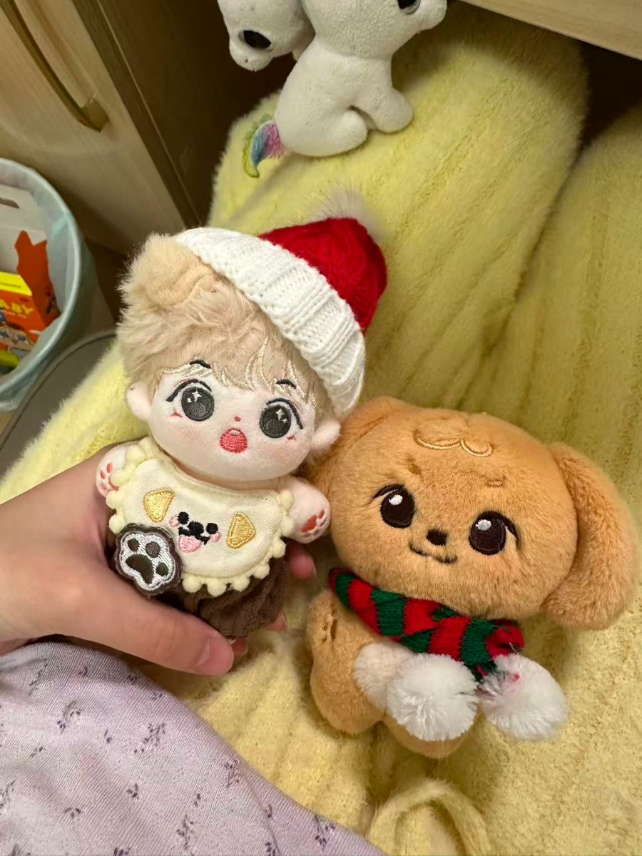 今天翻出了早就准备好的圣诞小配饰,赶紧给我的两个宝贝玩偶窝窝和蛋蛋安排上圣诞造型!口字旁的“窝”总让我觉得窝窝像个爱躲在小窝里的小家伙,而蛋蛋圆乎乎的模样也超贴合名字。先给窝窝戴上红白相间的针织圣诞帽,软软的毛线帽刚好卡在它的小脑袋上,帽边的白色绒毛衬得它的大眼睛更灵动了,再给它穿上带小爪子图案的奶白色小衣服,瞬间变身圣诞小萌娃。蛋蛋是只棕色的小狗玩偶,给它系上红绿格纹的圣诞围巾,围巾两端的白色毛球垂在胸前,可爱得不行。两个小家伙挨在一起,窝在鹅黄色的毛绒垫子上,背景里还有个白色的小玩偶凑热闹,看着它们打扮得漂漂亮亮的圣诞模样,忍不住举着手机拍了好多张,感觉整个房间都被这满满的圣诞氛围感填满了,我的窝窝和蛋蛋也太适合圣诞装扮啦!
