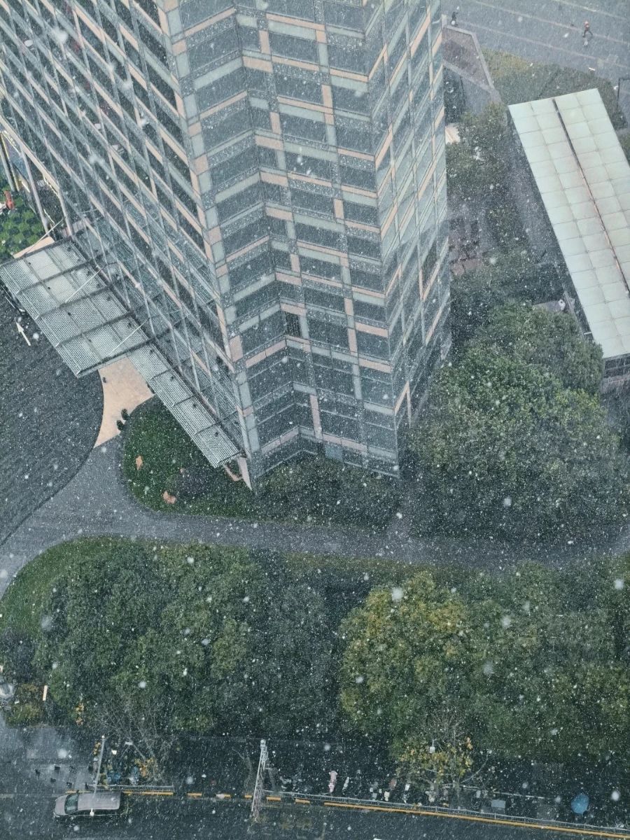 千呼万唤,上海终于下!雪!啦!不少上海人的朋友圈都沸腾了!从静安寺的飞檐,到武康路的窗台,再到你家的空调外机……每一个角落,都成了“限量版”背景板。大家晒出了车窗上歪歪扭扭的雪字,遛狗爷叔的镜头里全是狗子对雪的一脸懵;从下半夜至次日早晨,雪花认真地飘落申城,全市大部地区都观测到了纯雪。恰逢二十四节气中最后一个节气“大寒”,寒冷也升级为实打实的“冰箱”模式,道路结冰预警随之拉响。等我走出教室,满是飘扬的雪花❄️,真的是兴奋,同学们也被久违的雪怔住了,拿出手机咔咔记录下难得的雪…