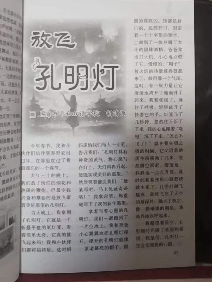 读《放飞孔明灯》一文,我仿佛跟着作者亲历了那场充满惊喜的春节体验。从初见孔明灯时的将信将疑,到点燃时的紧张忐忑,再到孔明灯几经沉浮最终升空的欣喜,字里行间满是童真与期待。那盏带着心愿的孔明灯,不仅是春节里的一抹亮色,更成了希望的象征。当它融入夜空化作璀璨的星,作者心中的希冀也随之升腾。这篇文字让我懂得,那些藏在传统习俗里的美好期许,总能给人温暖的力量,而亲手放飞心愿的瞬间,本身就是最珍贵的美好。