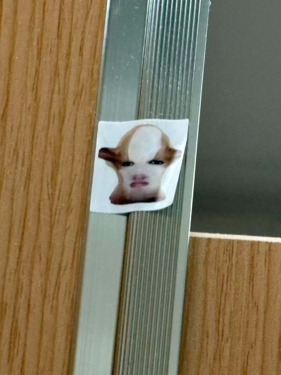 后来每次去洗手间,都会下意识看一眼那张贴纸。它在的。柴犬依然呆滞,字依然歪着,看久了竟觉得它有点认真,像在严肃地讨论一个千古难题。
