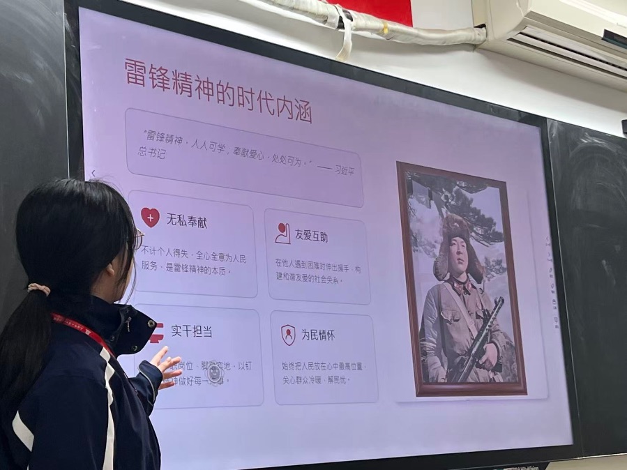 本周3月13号“践行雷锋精神 传递志愿温情”主题班会,先解读雷锋精神的时代内涵,包含无私奉献等核心,还开展知识问答互动;再通过情景模拟、分享身边雷锋故事,让大家感受榜样力量;随后发出践行倡议,明确从助人、参与志愿等日常小事践行的方法;最后总结呼吁同学们将雷锋精神内化于心、外化于行,做传承者与践行者。