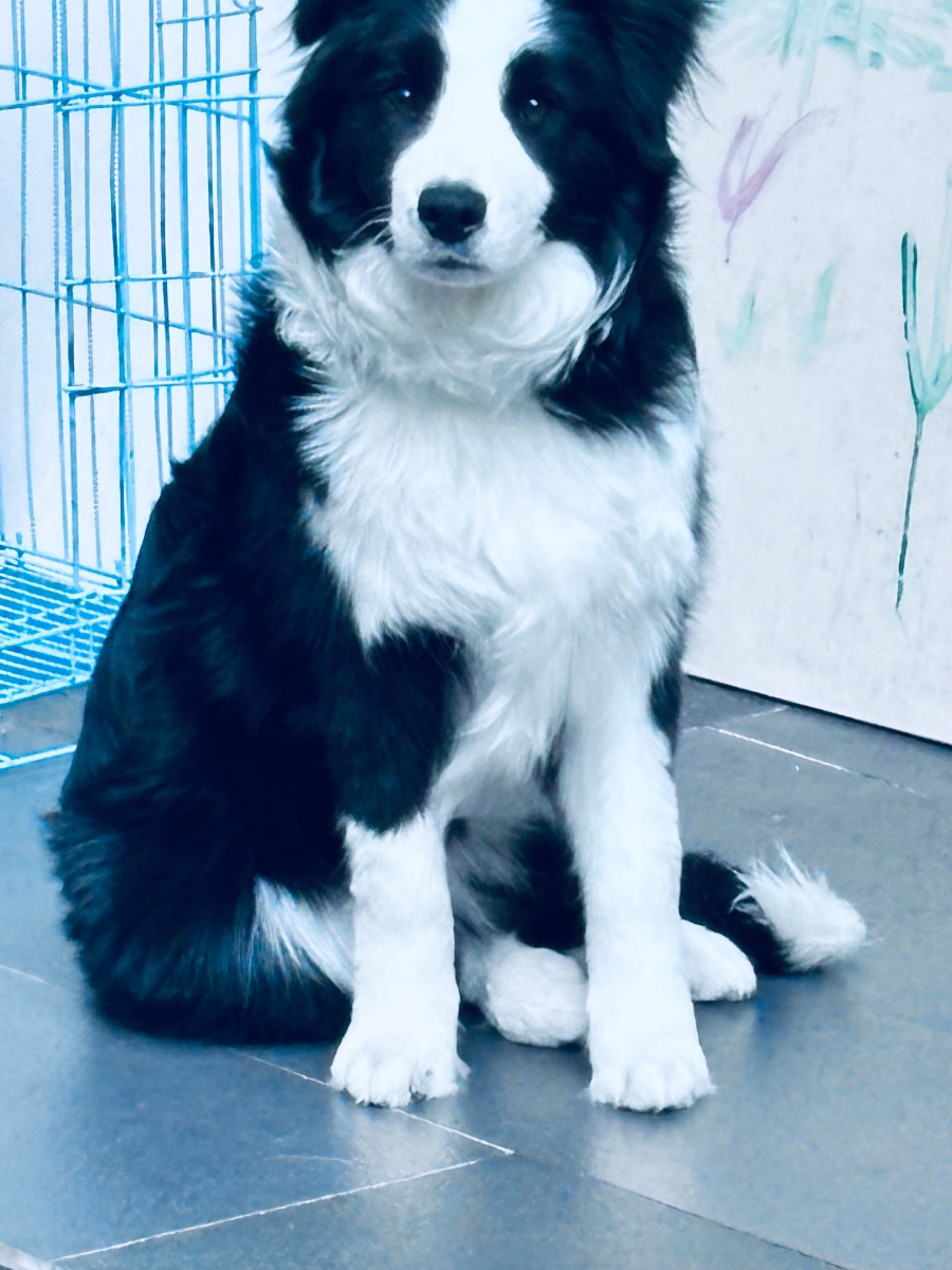 我家有一只边境牧羊犬,它叫团团。团团有着黑白分明的毛发,背上的毛像墨汁染过,胸前和爪子却雪白雪白,远远望去像穿着一件帅气的小礼服。它的眼睛黑亮黑亮的,像两颗灵动的黑葡萄,总是透着机灵劲儿。