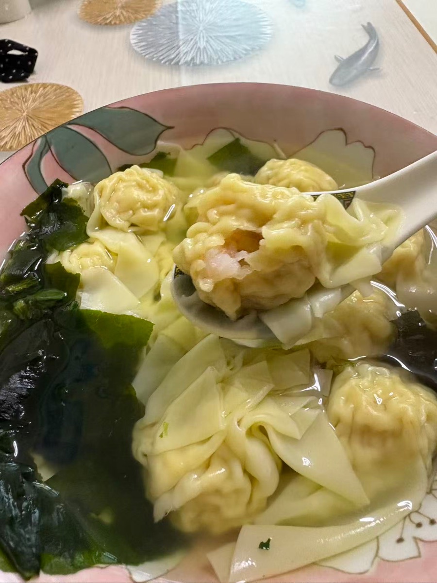 端到面前,先喝一口汤——鲜得眉毛都要飞起来。再用勺子轻轻舀起一只馄饨,薄皮透出肉馅的粉嫩,像裹着轻纱的明珠。送入口中,皮滑溜溜地滑过舌尖,几乎不需要咀嚼,肉馅的鲜甜就在嘴里化开了。那是一种温柔的、妥帖的味道,从嘴巴一直暖到胃里。