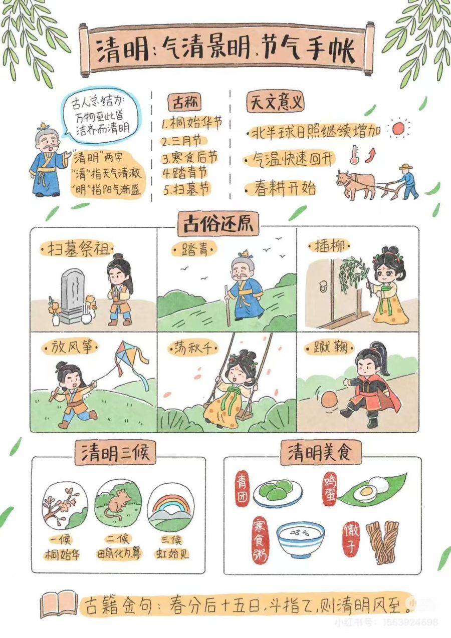 1. 清明节气(周代):万物清洁而明净,是春耕春种的时节。