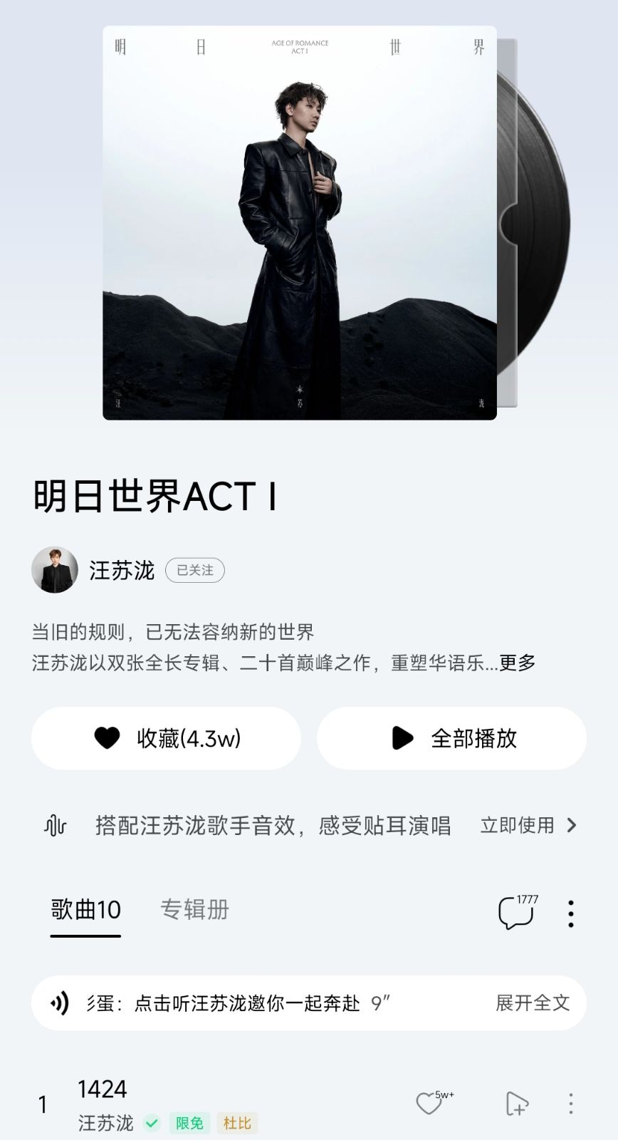 时代,《明日世界》选择用如此庞大的规格,去承载汪苏泷