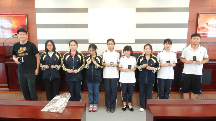 为响应团员发展管理号召,我校团员经过团课培训和入团考试,在提交各支部大会讨论通过后,共有32位同学被校团委批准成正式团员。在校团委书记吴玥尔同志介绍了本学年团员发展情况后,全体成员起立,庄严的旋律奏起,新团员们放声高唱团歌。接着,由主持人康亚菲同学宣布入团宣誓人名单,吴玥尔老师给团员们颁发团员证,团徽,并合影留念。