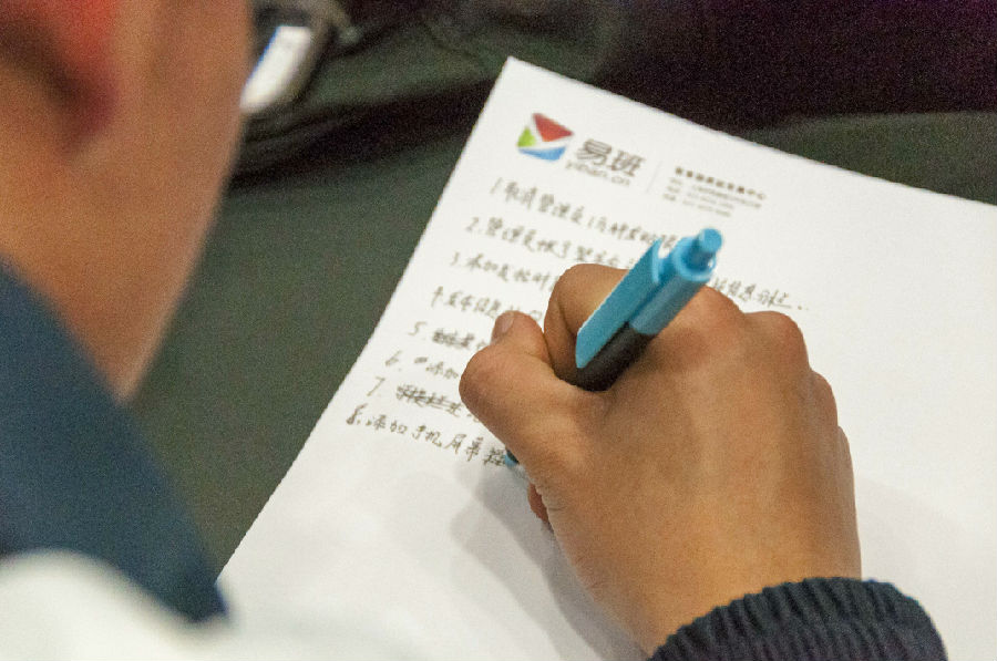 在环节二中,主持人用抽签的方式把大家分为7个小组,每个小组都有着自己的任务,幸运的我与站长一个小组,我们小组的任务是讨论如何推广文明风采微信公众号,以及如何增加易班的宣传力。经过一个多小时的激烈讨论,我们组一致同意通过制作视频的方式宣传文明风采和易班。在讨论过程中,我校易班工作站站长与经济管理学校站长进行了深一步的交流。
