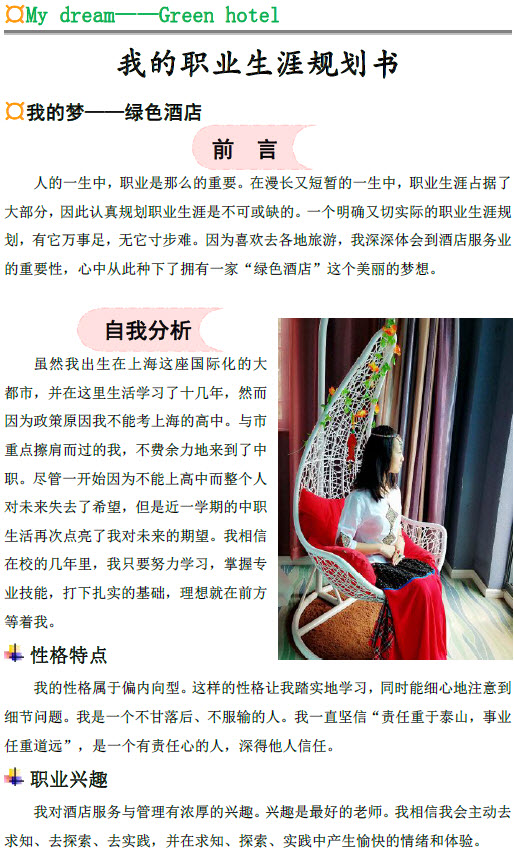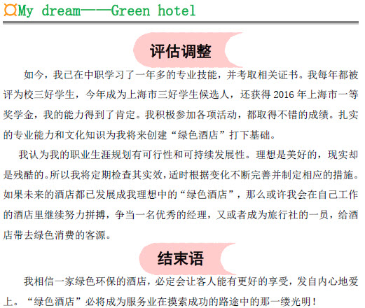 论坛>上海港湾学校>易班中职学校>《我的梦—绿色酒店》
