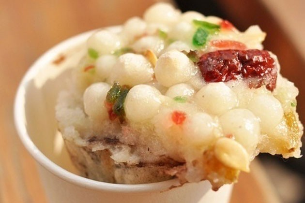 梅花糕是江南著名的风味特色小吃,南京很多地方都会有卖,形似梅花,虽然小小一个,但内容极其丰富,上面有小元宵、青红果、松子仁等,里头还有红豆沙,味道鲜美,外焦里嫩,甜而不腻,回味无穷~