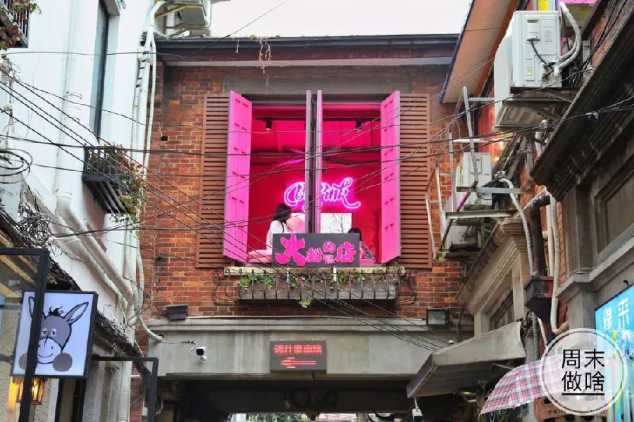 而魔都的大粉坐落于人文气息浓郁的田子坊,店内各种能拍出好照片的角落完全不亚于京城。即便实在工作日也是络绎不绝的游人。