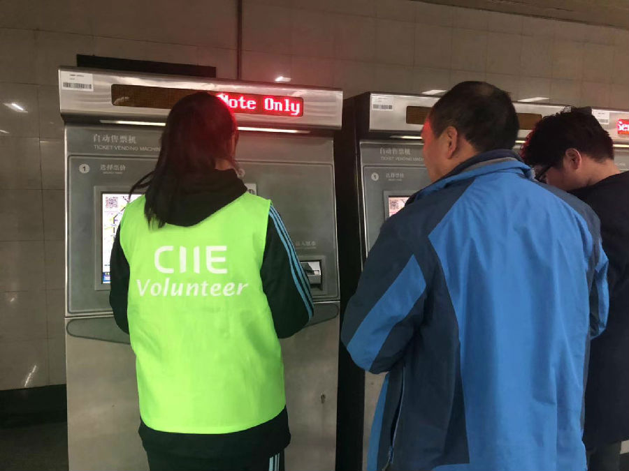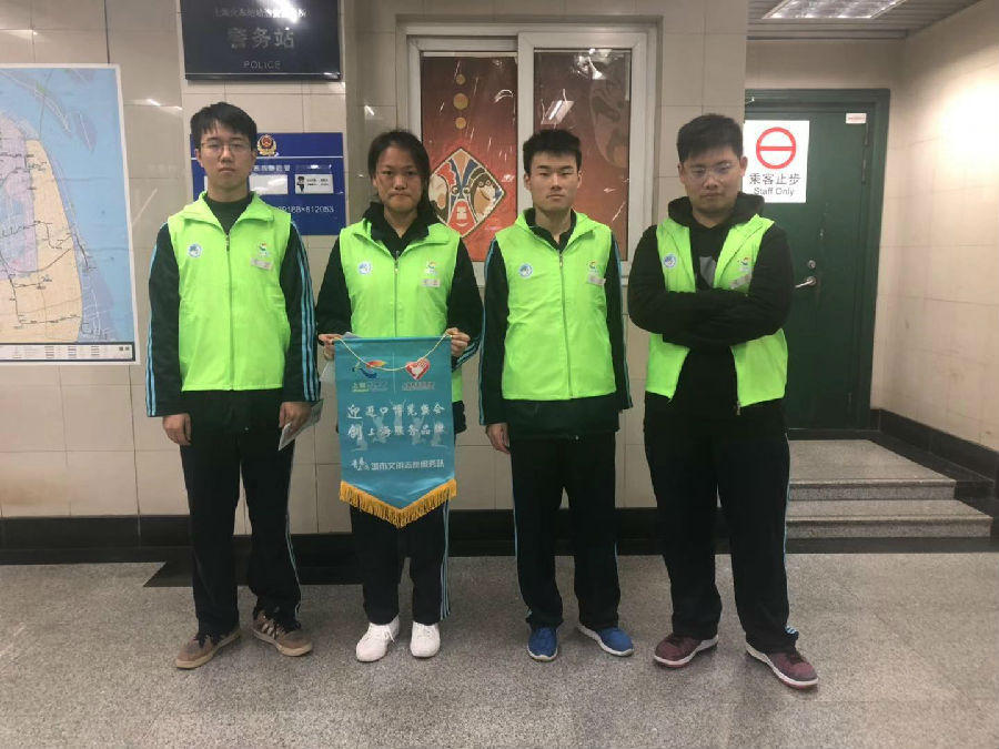 中国国际进口博览会于2018年11月5日在位于上海的国家会展中心揭幕。这是世界上首个以进口为主题的国家级博览会。为配合进博会的举办,弘扬上海城市文明,发扬我校志愿精神,我校团委老师荆鲁带领四名学生于11月9号下午两点,在宝山区一号线呼兰路地铁站,开展志愿服务。