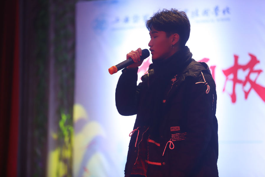 首先彩排的是由嘻哈社的1805班的彭博辉与1607班徐佳龙带来的流行说唱《不用去猜》。嘻哈社的一大特色就是流行说唱,而流行说唱顾名思义就是有节奏地说话的特殊唱歌形式,它以在机械的节奏声的背景下,快速地诉说一连串押韵的诗句为特征。这次让我们一起期待1805的彭博辉与1607的 徐佳龙首次跨级合作吧!
