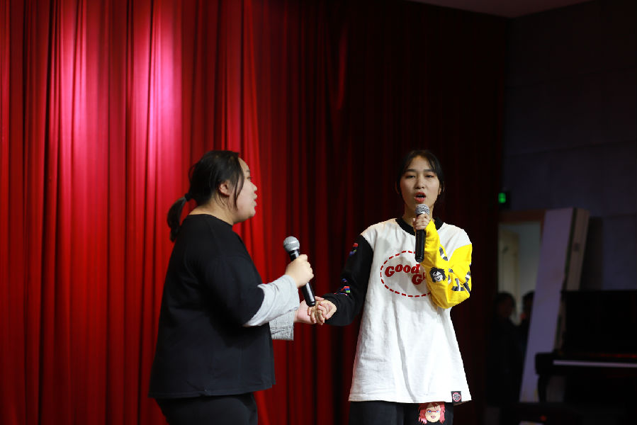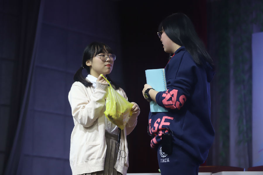 心理话剧社这次为大家带来了小品《抉择》。心理剧表演是我校心理健康教育的特色之一。心理剧表演是通过全体成员扮演日常生活问题情境中的角色,使成员把平时压抑的情绪通过表演得以释放、解脱,同时学习人际交往的技巧及获得处理问题的灵感并加以练习。心理话剧社的成员们用他们真实的演技,引起了在场表演人员与工作人员情感的共鸣。