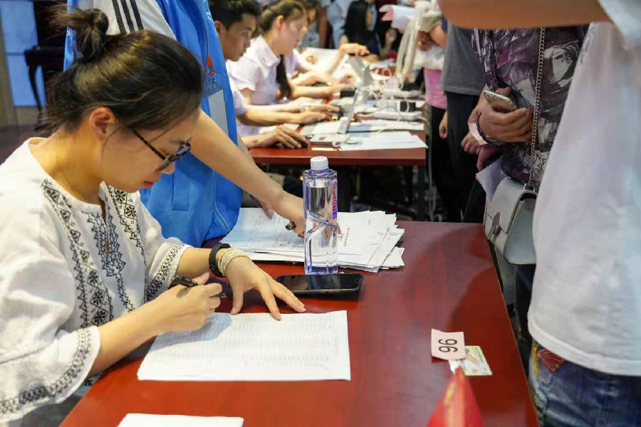 新生报到场地位于我校图书馆三楼,新生须在老师与学生工作人员指导下,仔细填报各类重要表格并缴纳学费。在新生报名等待过程中,我校易班成员会为在场的家长解答关于入学相关信息,同时下发我校易班工作站站内成员自制的宣传折页,令更多家长与同学对于我校教学环境与我校特色学生组织易班工作站有初步的了解。