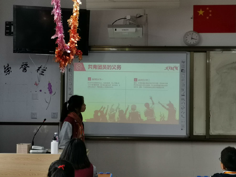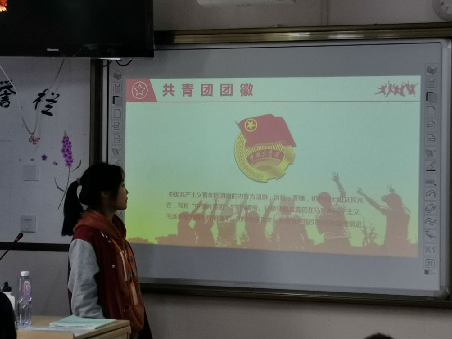今天我们班举行了两个班会,一个是团课,另一个是心理。团课是由我班团支书冯念念同学为大家主持的。虽然是第一次主持班会,显得比较害羞,但她还是将整个流程给走了下来,非常不容易,为她点赞!(配上几幅图片)