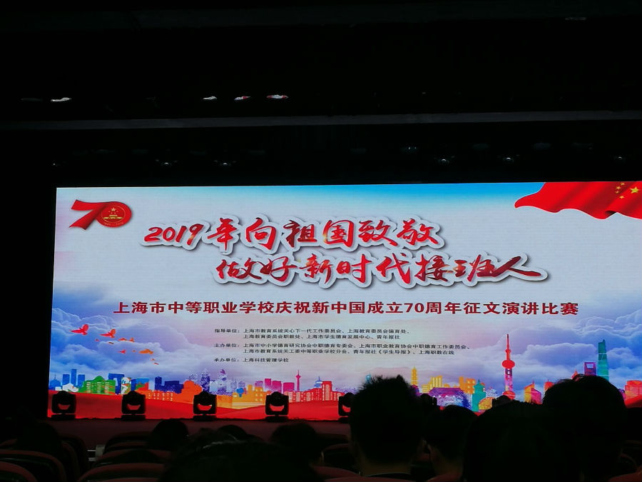 2019年暑假期间,为庆祝我国成立70周年,深入贯彻习近平新时代中国特色社会主义思想和党的十九大精神及全国教育大会精神,上海市教育局在上海各大中职学校中开展“2019,向祖国致敬”主题系列活动。其中包括“看·荐”中国、“漫·游”中国、“礼·赞”中国、“志·汇”中国,通过国漫、摄影、访谈、征文演讲等不同的方式来表达自己对祖国的敬意。