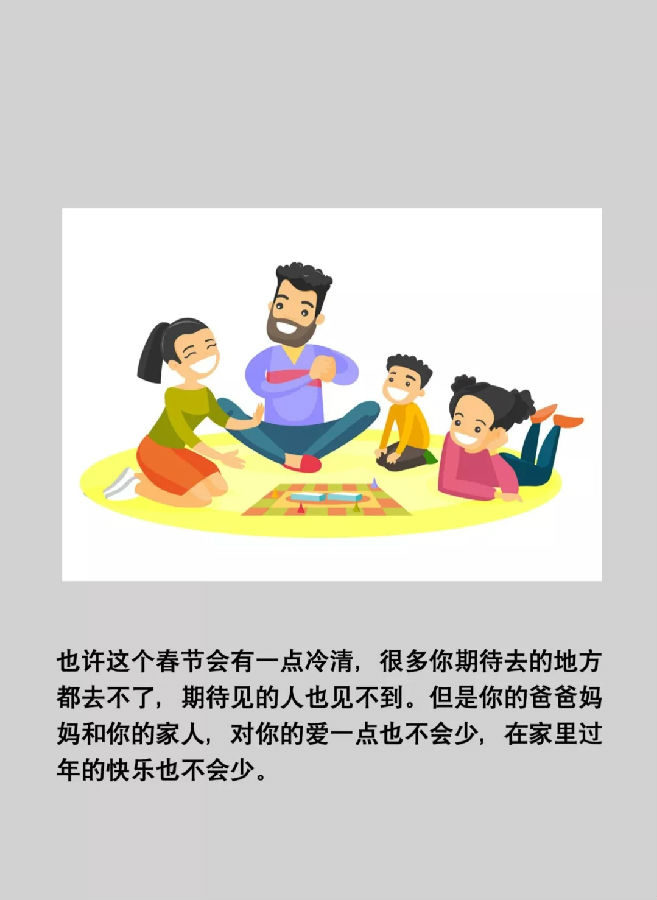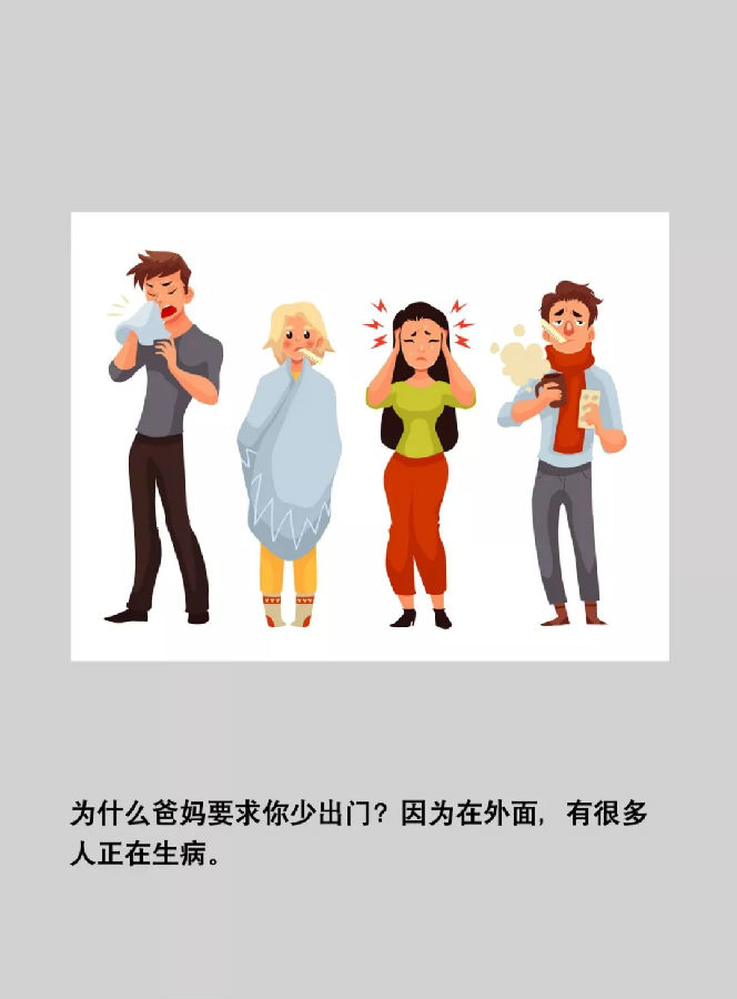1要避免去人多的地方,最大限度地减少接触病毒的机会,这也是爸爸妈妈为什么这个春节没有出门的主要原因。
