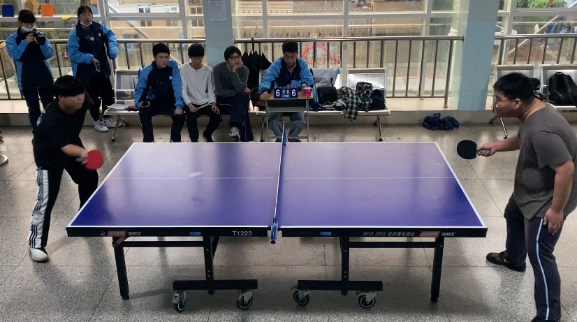 通过24、25两日的初赛角逐赛,最终选出了四名选手,参与决赛。对于他们来说,这次比赛不单单是一次简单的校园乒乓球赛,更是一个展现自我风采,为班级争光的平台。本场比赛规则与国际乒乓球比赛无异,即一局比赛中,先得11分的一方为胜方。10平后,先多得2分的一方为胜方。
