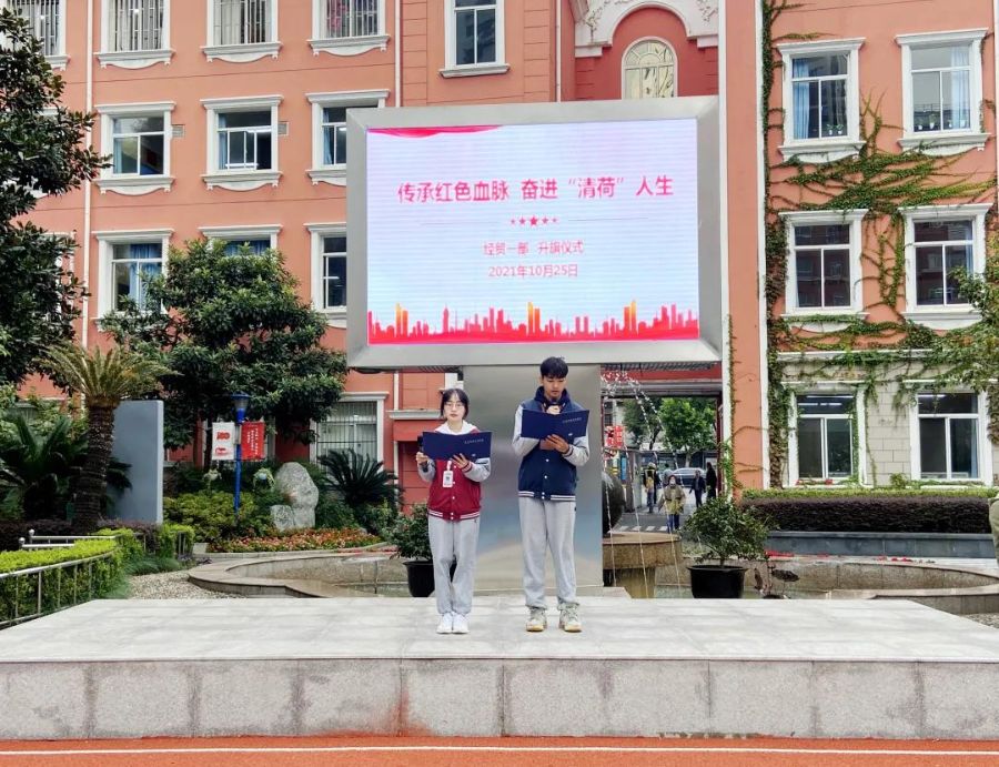 升旗仪式上,校领导为“党史.金融史”的学习活动征文获奖选手及的团总支、学生会各部门的新干事代表颁发奖状和授予胸牌 ,勉励他们继续奋发有为,为争做一名优秀的清荷学子而继续努力。