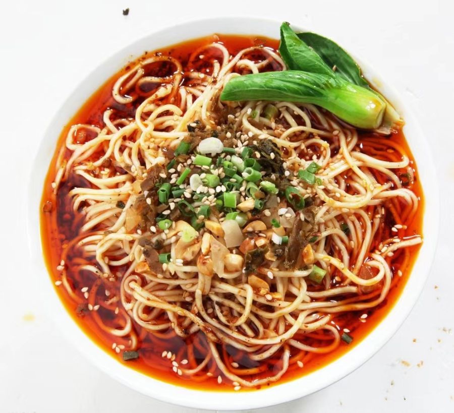 重庆小面是重庆四大特色之一,是重庆的主食之一,尤其是早餐较常见。重庆小面是重庆面食中最简单的一种。重庆小面是指麻辣素面,麻辣味型。重庆面食还包括重庆小面和有臊子的面食,如牛肉、肥肠、豌豆杂酱面、荣昌铺盖面等。重庆小面富于变化,在面店可以要求店家制作个人定制口味,如果要求店家"干熘"(拌面)、"提黄"(偏生硬)、"加青"(多加蔬菜)、"重辣"(多加油辣子)等等。佐料是重庆小面的灵魂,一碗面条全凭调料提味儿。先调好调料,再放入煮好的面条。麻辣味调和不刺激,面条劲道顺滑,汤料香气扑鼻,味道浓厚。重庆小面是作为南方人的重庆市民普遍接受的传统面食,因其独特口感,以辣闻名,近年来全国知名。