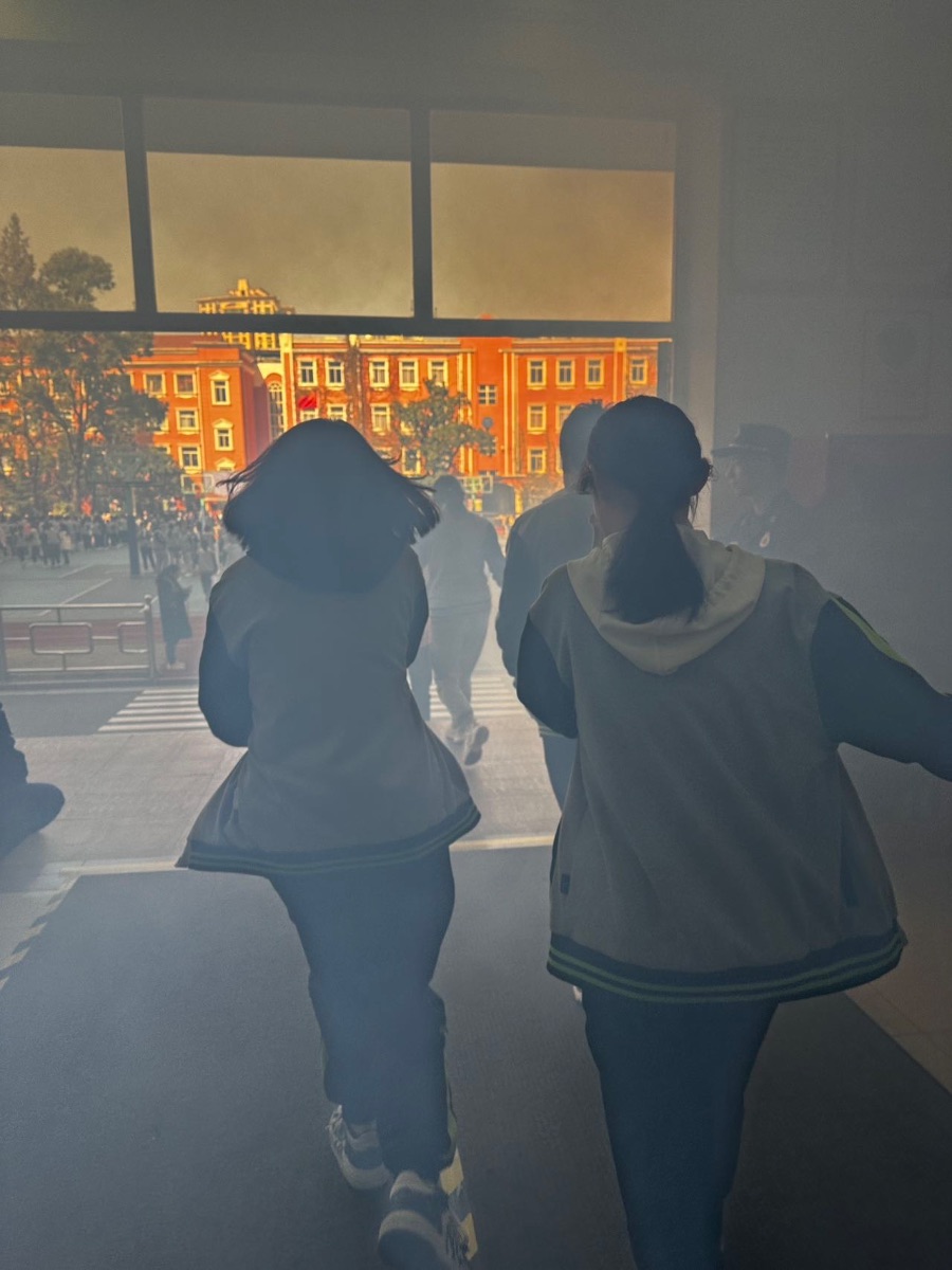 周五我们进行了消防演练 在逼真的烟雾场景模拟下 我们的心也紧张起来 来到操场后真实的体会了劫后余生的感觉 我们还学习到了消防知识 后续还亲身体会了在真正的火灾当时的紧急危险也跟着消防人员学习了灭火器的正确用法