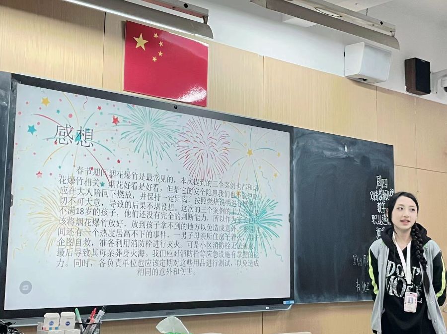 2、心理委员张晗羲同学总结如何应对各类安全危害