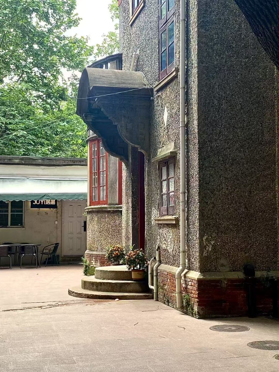边上还有间带“JUYI居易”招牌的小屋,摆着桌椅,感觉在这儿喝杯茶,能听老房子唠唠过往。周围大树郁郁葱葱,把阳光剪碎了洒下来,给老房子罩上层温柔滤镜。