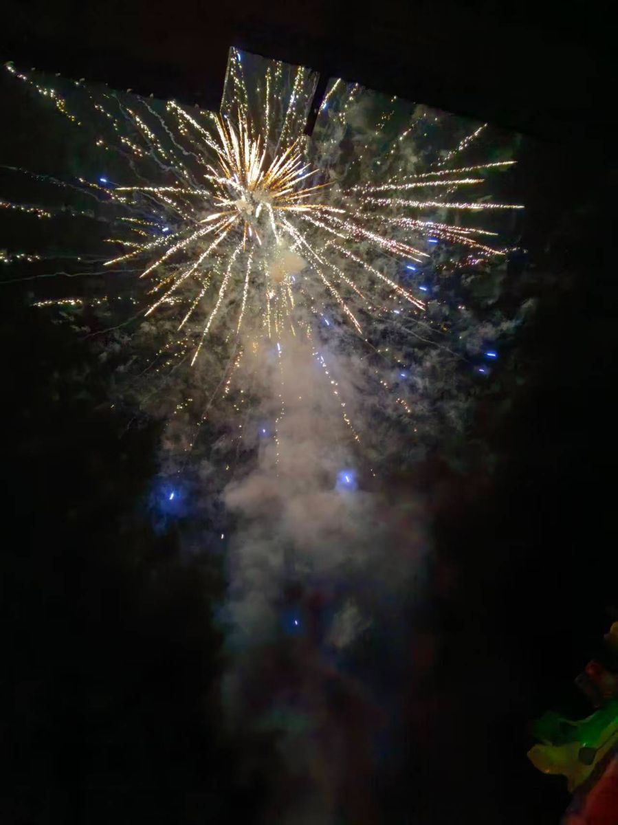 国庆长假,我回老家参加堂姐的婚礼。晚宴设在村口晒谷场,酒过三巡,突然听见“咻——”的破空声。一抬头,烟花正在夜空绽放。金色的菊,银色的柳,红色的五角星,把整个村庄照得恍如白昼。新娘子仰头的侧脸被映亮,眼里有星光在跳。孩子们兴奋地尖叫,大人们举着手机记录。我站在喧闹中,看着烟花一簇接一簇。想起课本里说的“火树银花”,原来古人早已见过这般美景。这转瞬即逝的绚烂,是为两个人的新生,也像在庆祝这片土地的重生。明天又要背起书包走向教室,但此刻,所有人都在这片光华下变成了孩子。烟花终会散去,可它照亮过的笑容,会留在心里很久很久