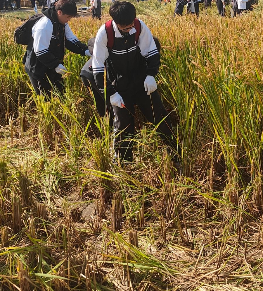 踏入园中,桂香萦绕,凉风拂去心中浮躁。我们先去了麦田,金彤彤的麦穗挂满枝头,像盏盏小灯,大家兴奋地割麦,欢声笑语不断。