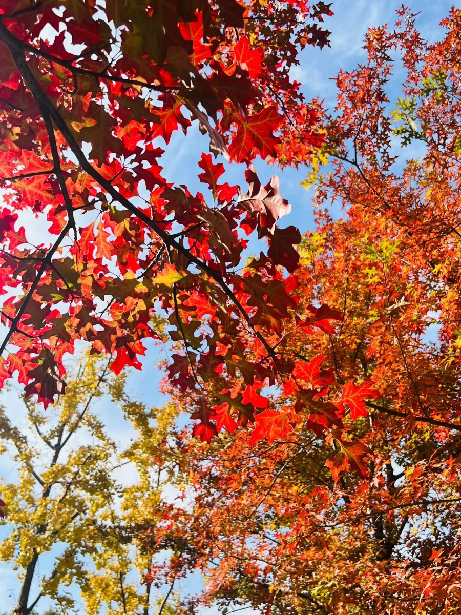 每片叶子都攒着秋的底气——从浅粉到艳红,从鹅黄到金棕,像是把一整个季节的热烈都揉进了枝叶里。不必刻意寻景,只随意站在树下,便能接住满树簌簌落下的秋意,连呼吸都沾着清冽的甜。这大概就是秋天的温柔:把盛大的浪漫藏在抬头可见的日常里,让每一次抬眸都成了与季节的私语。