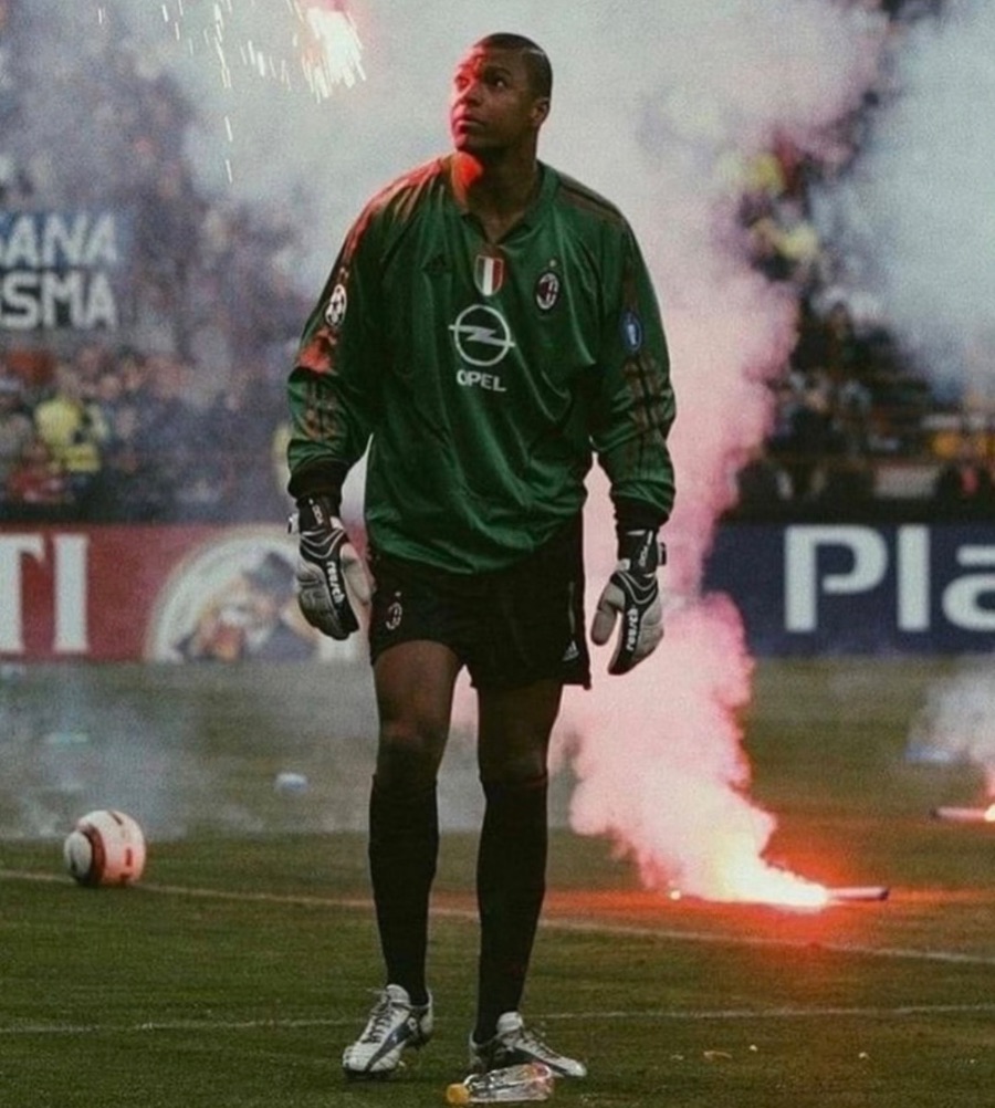 迪达想到这个名字,印象里那个黑皮硬汉的样子浮现出来,迪达巴西人全名内尔松·德热苏斯·达·席尔瓦,1973-10-07生2002年阿比亚蒂受伤后上位,成意甲首位外籍最佳门将;助球队夺2002-03、2006-07欧冠,2003-04意甲、2007世俱杯等;2010年离队,为米兰出战约300场。成为意甲最佳门将也是第一位以门将身份进入金球奖候选名单的门将同时他也镇守巴西国门同时也是巴西历史上最佳门将之一同时他以反应快、门线统治力强著称,是AC米兰两夺欧冠的功勋门神,2020年起任AC米兰一线队门将教