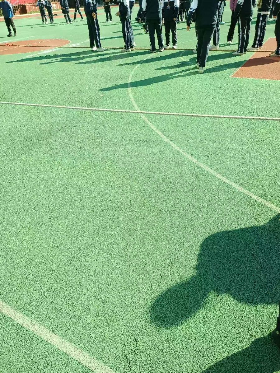 阳光正好的大课间,我们班的跳长绳训练又开始了。摇绳的同学紧握绳柄,手臂有节奏地摆动,长绳如银蛇般上下翻飞,划出整齐的弧线。