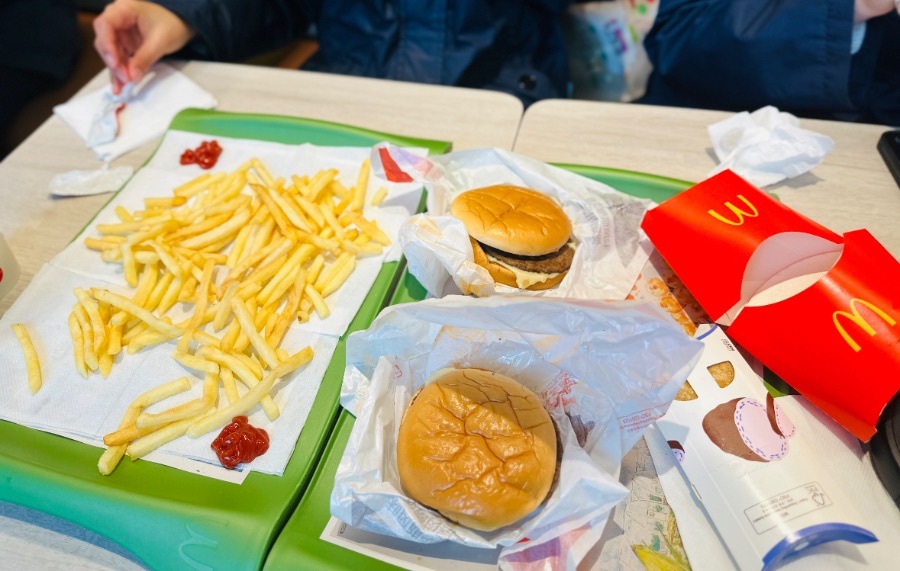 推开麦当劳暖黄的门,把料峭春寒关在门外。托盘里的金黄薯条像一把把小太阳,根根笔直地躺在吸油纸上,边缘泛着焦脆的光泽,两团鲜红的番茄酱像小小的火焰,在白纸上晕开温暖的痕迹。