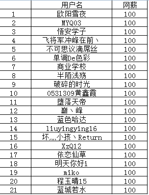 818日今日话题网薪奖励名单如下,网薪均已发放。