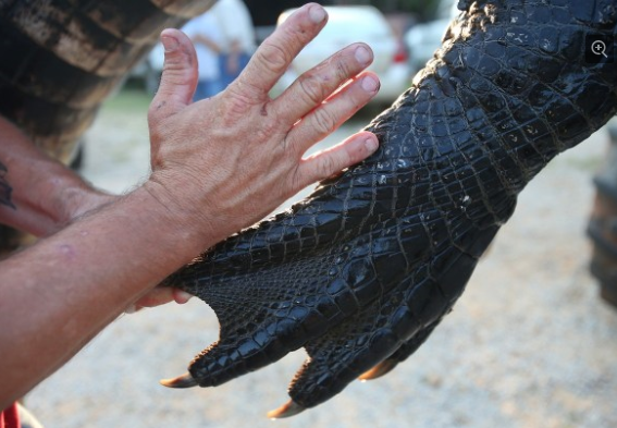 当5个人终于把鳄鱼拖上岸时才发觉,它体型庞大,体长约4.57米、重458.8公斤,胃部周长1.79米,吻部长近41厘米,光是爪子伸开就比一个成年人的手掌还大。