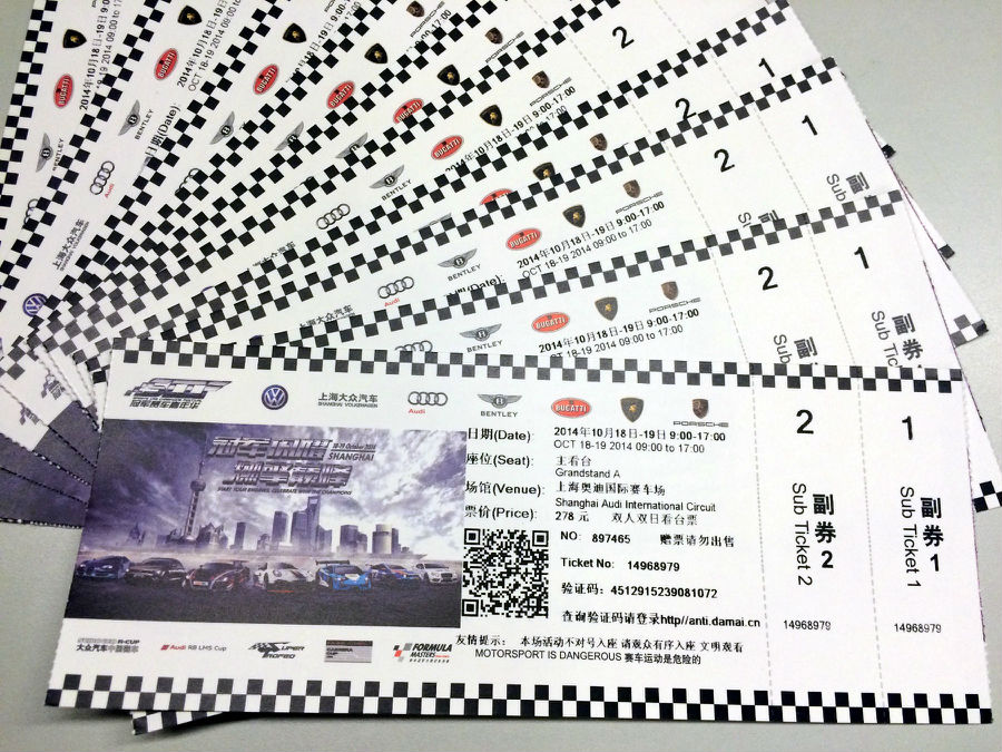 票子性质:双人双日看台票(可以两个人去看豪车了哦!)