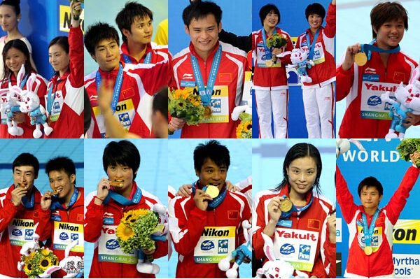 第16届世界游泳锦标赛跳水比赛全部结束,中国跳水队夺得10枚金牌、3枚银牌和1枚铜。这些成绩表明:中国队依旧在当今跳坛占据绝对霸主地位。